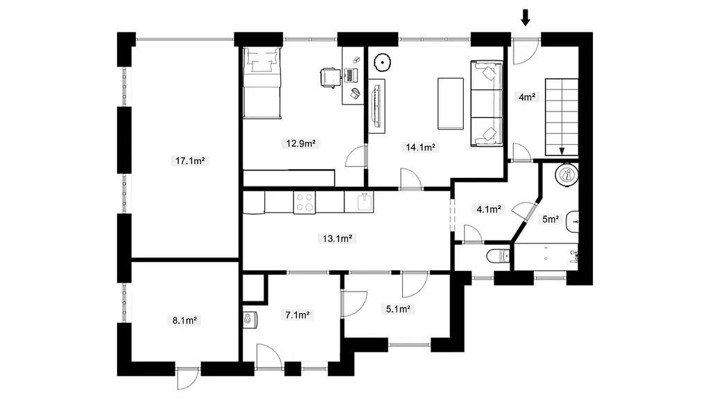 Dům včetně garáže s dílnou má zastavěnou plochu 135m². Je v dobrém stavu vhodný k okamžitému nastěhování. Ale hlavně nabízí mnoho zajímavých variant přestavby dispozic a rozšíření dle potřeb nového majitele. Zejména se nabízí propojit garáž a dílnu s obytnými prostory, a je pak reálné dosáhnout celkové užitné plochy i 140m² a více.