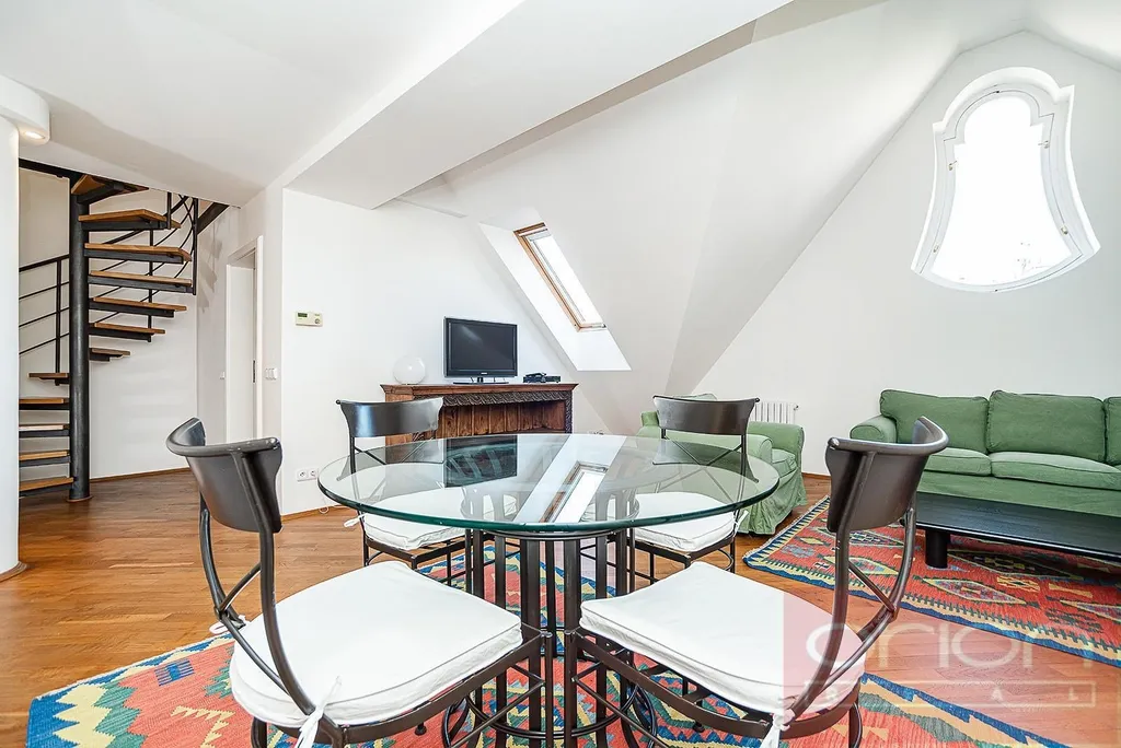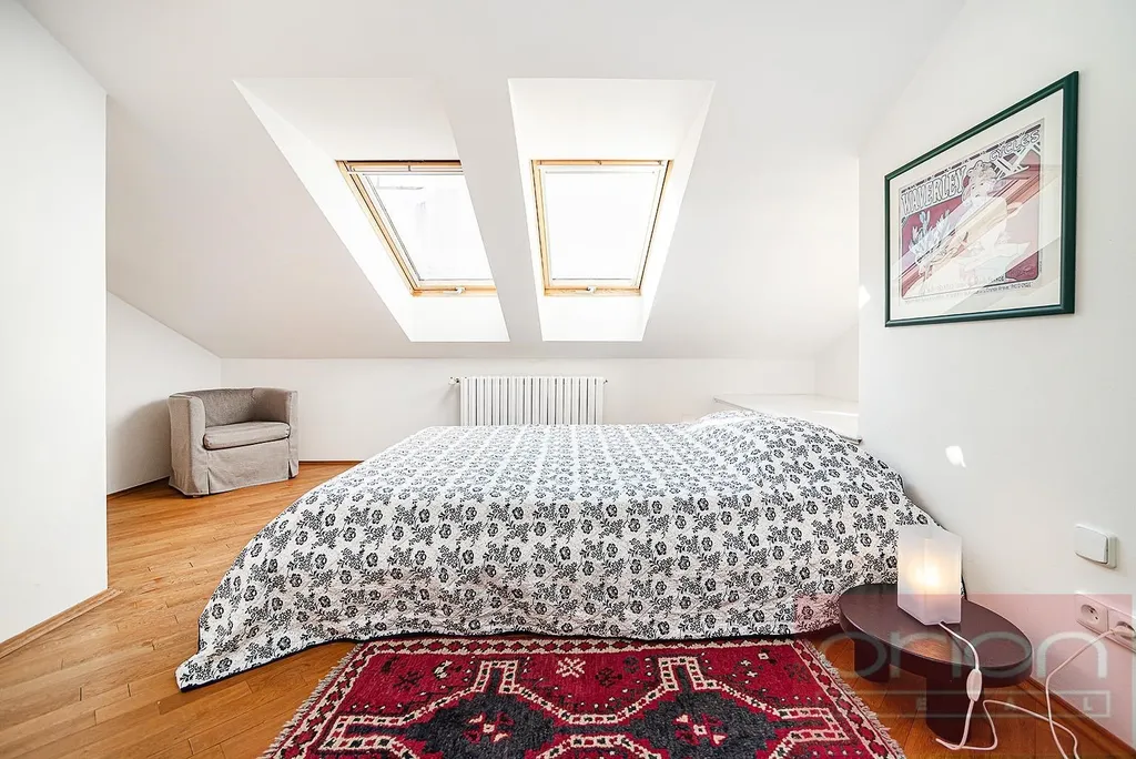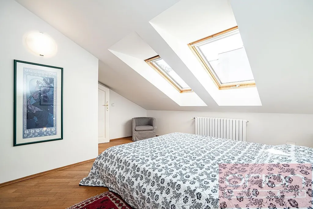 Luxusní, zařízený, mezonetový byt 3+1 v 5. a 6. patře zrenovovaného domu s výtahem a výhledem na Pražský hrad. Byt má celkovou plochu 108 m2 a nabízí v nižším patře vstupní chodbu, plně vybavenou kuchyň, obývací pokoj s jídelnou, ložnici se šatnou, koupelnu se sprchovým koutem, komoru. V horním patře je vstupní hala s vestavěnou skříní, velká ložnice se šatnou, koupelna s vanou a výhledem na Prahu. Pouze pár kroků od stanice metra Karlovo náměstí. V blízkosti je Václavské náměstí, základní škola, obchody a restaurace. K dispozici ihned.