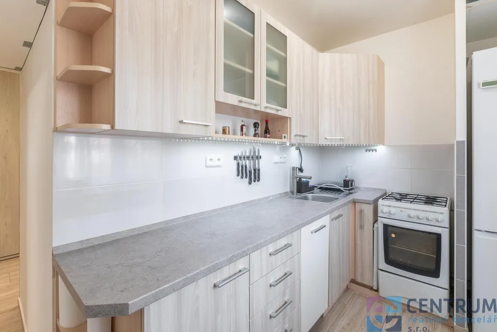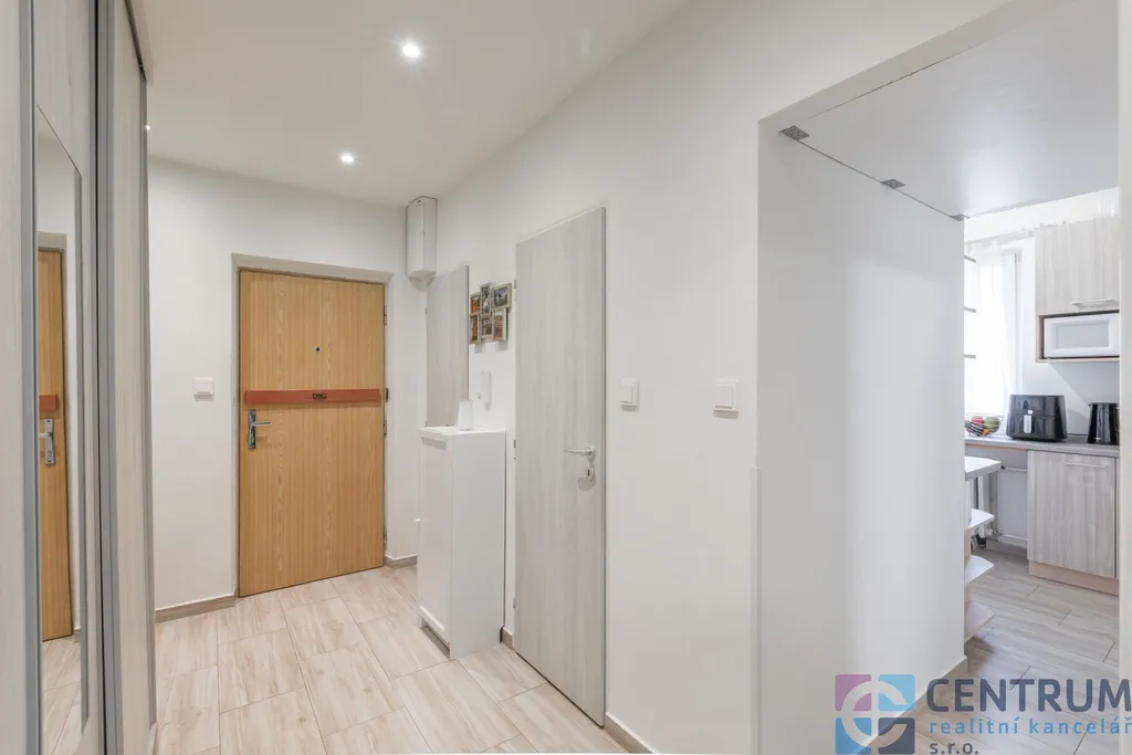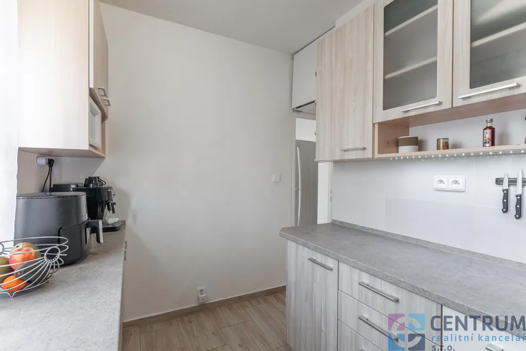 Byt prošel částečnou rekonstrukcí a nabízí velmi praktické dispoziční řešení s příjemnou atmosférou domova. Díky orientaci na sever a jih poskytuje krásnou rovnováhu denního světla. Kuchyně a jeden z pokojů směřují na klidnější severní stranu, zatímco druhý pokoj, ke kterému přiléhá zasklený balkon o rozloze necelých tří metrů čtverečních, je orientován na slunný jih. Ke komfortu bydlení přispívá také samostatná toaleta.