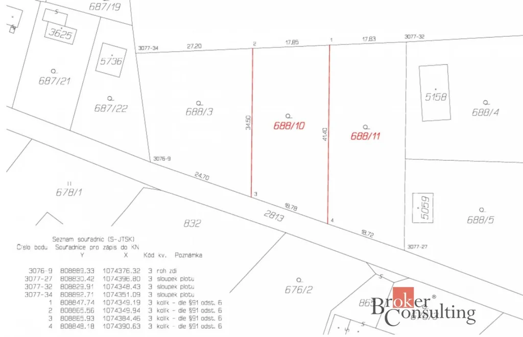 V případě zájmu je možnost koupit i sousední parcelu s výměrou 677 m2 a tím si pozemek zvětšit.