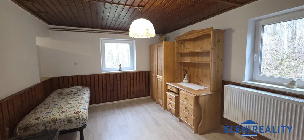 Pokud hledáte místo, kde nebudete rušeni stresem moderní doby, kde budete moci houbařit, sbírat medvědí česnek, lelkovat na zápraží nebo si číst knížku a poslouchat při tom zpěv ptáků Zkrátka pokud hledáte místo, kde budete mít pocit, že se zastavil čas a je Vám blízké něco and #34;Na samotě u lesa and #34;, potom tady mám přesně něco pro Vás. Exkluzivně nabízím k prodeji rekreační objekt s číslem evidenčním (v KN zapsáno jako stavba pro rodinnou rekreaci) s dispozicí 3+1 a velkou terasou, z které je krásný výhled do okolí, v části Chebzí, Písečná- Studený Zejf. Nejbližší obchod je v Písečné, což je cca 10 minut autem (20 minut na kole) a sousedé téměř žádní Až k chatě vede nová asfaltová obecní komunikace. Pozemek je akorát, jeho celková výměra činí 477 m2 (zastavěná plocha a nádvoří má 70 m2). Stávající majitel má dalších 73 m2 pronajato od Pozemkového fondu ČR, přičemž nájemné za těchto 73 m2 činí 500.- Kč/ rok. Důvod prodeje? Stěhování do zahraničí. A teď trochu technických věcí. Rekreační objekt byl zkolaudován v roce 1976, je zděný a od roku 2022 prošel rekonstrukcí. A co je tedy uděláno? Komplet nová elektroinstalace i vodoistalace, nové rozvody topení v mědi včetně instalace nových radiátorů, nová krbová kamna s teplovodním výměníkem, nová plastová okna ( trojsklo), nová střešní krytina ( Cappaco) včetně svodů, nové dveře v přízemí, nová koupelna se sprchovým koutem, nová kuchyň, nové čerpadlo na vodu. A jakou má objekt dispozici? 1 NP: veranda, vstupní chodba, samostatné WC, koupelna se sprchovým koutem ( zde je umístěn el. bojler na ohřev teplé vody), kuchyně s krbovými kamny s výměníkem a obývací pokoj. Do 2 NP vede dřevěné schodiště s podestou (odtud je výstup na rozlehlou terasu) a 2 pokoje + jeden menší pokojík ( možnost vybudovat další soc. zařízení). V domě malý sklípek. Dům je napojen na vlastní studnu a septik, elektřina 230/400. Co Vám toto místo nabídne? Romantiku, pohodu, ticho ...Okouzlila vás tato nabídka natolik, že už si představujete jak si večer u krbu při skleničce dobrého vína zahrajete třeba karty? Chtěli byste osobně nasát tu atmosféru? Stačí když zvednete telefon, zavoláte mi a spolu se už domluvíme na osobní prohlídce . Sleva při rychlém jednání. Volejte Eleni po 13 hod. Budu se na Vás těšit.