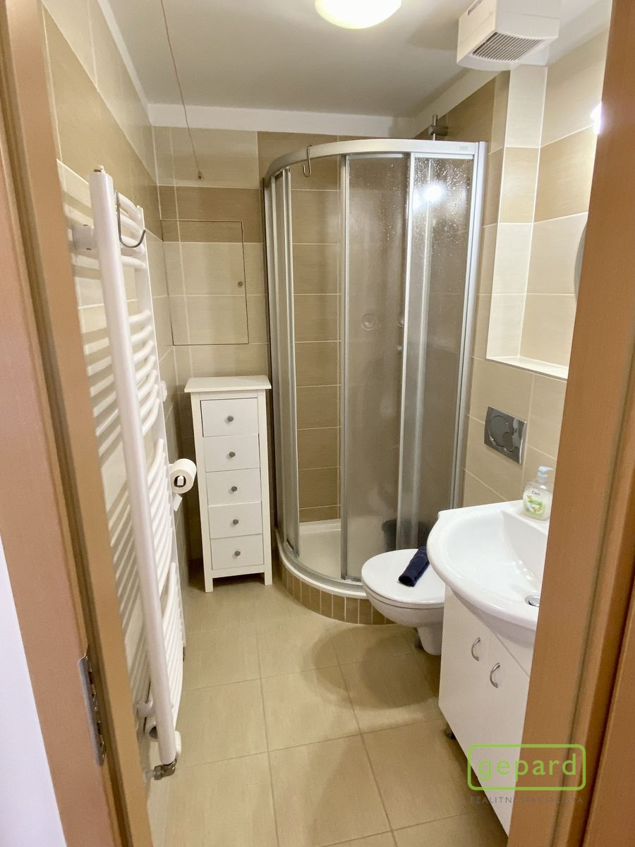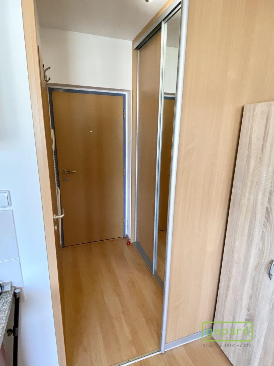Představujeme na pronájem bytovou jednotku o velikosti 1+kk s komorou, která se nachází v klidné části města Mníšku pod Brdy, v ulici Ke škole. Bytová jednotka se nachází ve 3.patře se severozápadní orientací a svou dispozicí nabídne vstupní chodbu s vestavěnou skříní, obývací pokoj s kuchyňskou částí, koupelnu se sprchovým koutem, toaletou + bude k dispozici nová pračka. V obývacím pokoji je umístěná jednolůžková postel, šatní skříň, komoda a psací stůl. Byt se pronajímá ve stavu, jak je viděno na přiložených fotografiích, s tím, že na finální podobě zanechaného nábytku je možné se domluvit. V celém bytě je plovoucí laminátová podlaha, v koupelně pak dlažba. Okna jsou dřevěná třívrstvá, topení – centrální plynové.