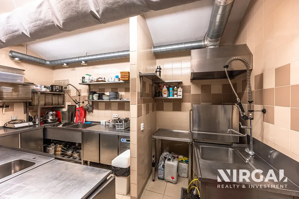 Součástí pronájmu je plně vybavená profesionální kuchyně s kvalitní gastronomickou technologií, včetně konvektomatu, myčky nádobí, chladicích a mrazicích zařízení, výkonného sporáku a veškerého vybavení potřebného k okamžitému zahájení provozu. Nábytek a interiérové prvky jsou zahrnuty v odstupném.