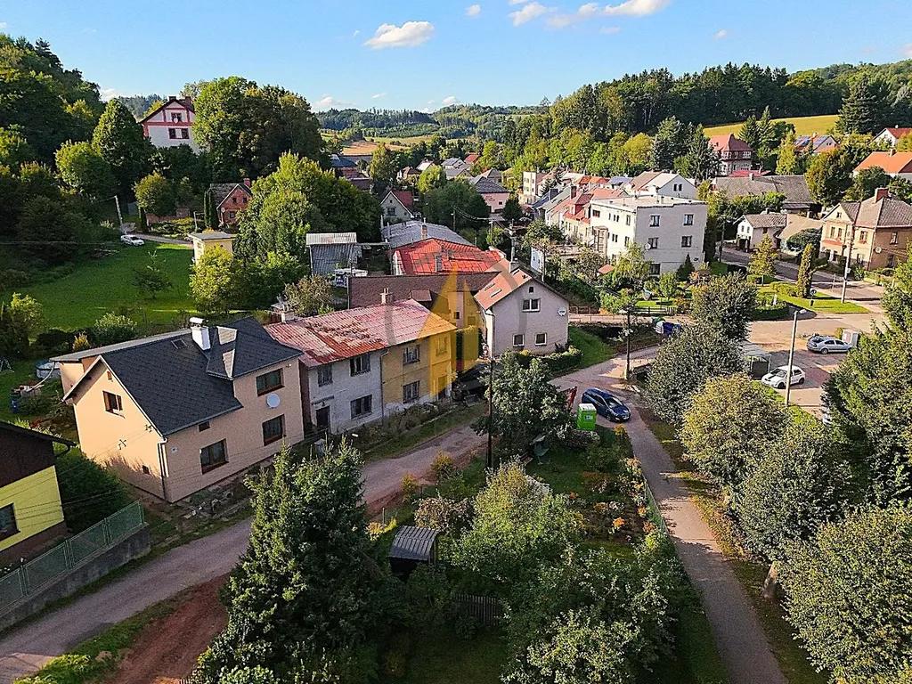 Přístup k domu je zajištěn z obecní komunikace. Výhodou je také možnost přikoupit sousední řadový dům se zahradou a rozšířit tak své bydlení nebo investiční záměr.