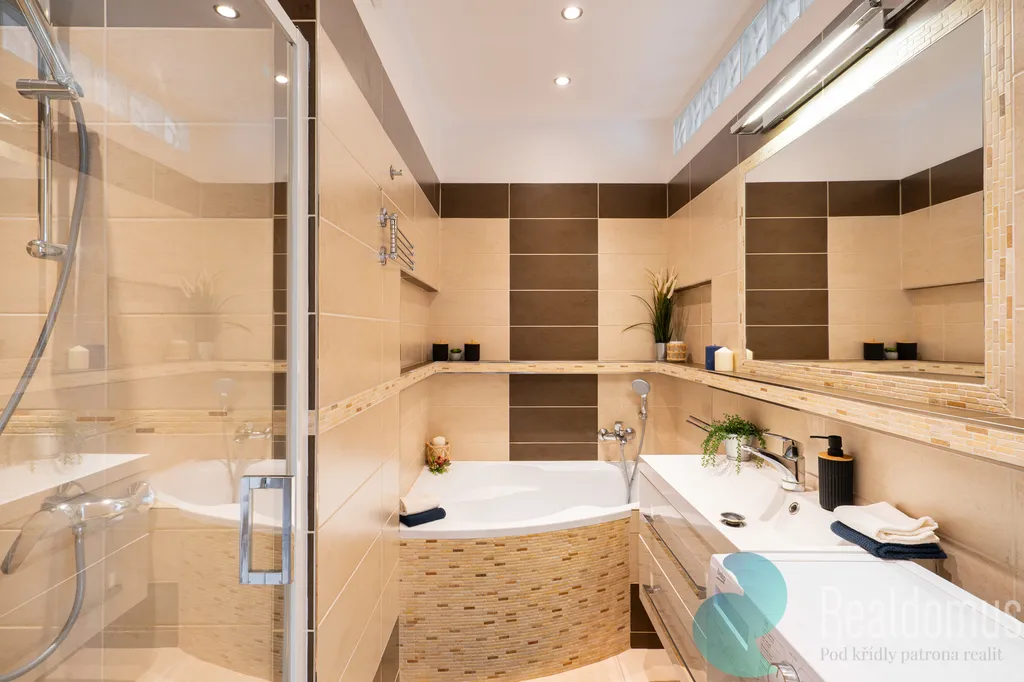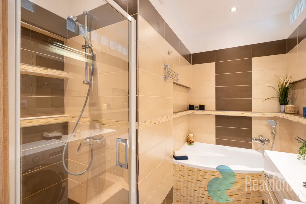 Byt prošel kompletní rekonstrukcí v roce 2018, v rámci které byly vyměněny elektrické rozvody a bylo vybudováno zděné jádro. Vznikla samostatná toaleta s vlastním umyvadlem a prostorná koupelna vybavená jak vanou, tak sprchovým koutem. Zajímavým prvkem je prosvětlení koupelny pomocí luxfer. Kuchyňská linka je vybavena vestavěnou myčkou, troubou a indukční varnou deskou. Ve vstupní hale se nachází praktická vestavěná skříň s věšákem a nástěnný botník.