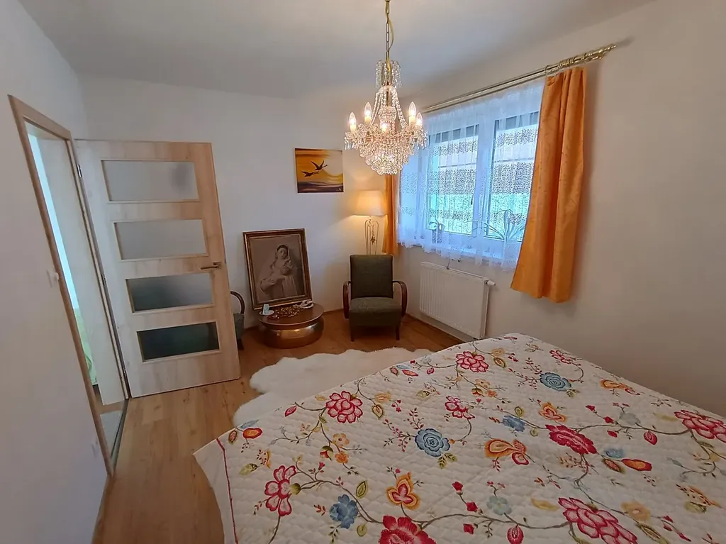 Nabízíme Vám příležitost získat nový a zařízený byt 2+kk v přízemí menšího bytového domu na okraji města Trhové Sviny. Dům byl dokončen v roce 2021. Byt je kompletně zařízen a nebyl dosud užíván. Vše je tedy nové a nepoškozené. Prostorové uspořádání bytu je následující. Ze společné vstupní chodby v přízemí domu je vstup do zádveří bytu. Koupelna je prostorná a je vybavena sprchovým koutem, umyvadlem, bidetem a WC. V koupelně je dále umístěna automatická pračka. Na stěně je kombinovaný topný žebřík, podlaha má elektrické podlahové vytápění. Chodbou s vestavěnými skříněmi je dále přístup do velkého pokoje s vybavenou kuchyňskou linkou. Dále je přes tento pokoj přístup do ložnice. V ložnici je velká postel s elektrickým polohováním a zdravotní matrací. Před okny jsou osazeny venkovní elektrické žaluzie. Vybavení je dobře patrné z fotek. K bytu dále patří menší komora, společná místnost na kola a kočárky. Součástí ceny je jedno venkovní parkovací stání před oknem z pokoje. Je možné si dokoupit i druhé venkovní parkovací stání. Byt není zatížen žádnou právní vadou ani zástavou a je tedy možné financování úvěrem.