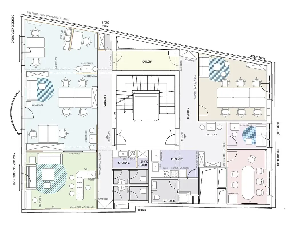 Jako jediný nájemce na tomto patře budete mít možnost využití dvou vstupů přímo z výtahového lobby, které jsou perfektní pro oddělení klientské a zaměstnanecké části, nebo týmů.