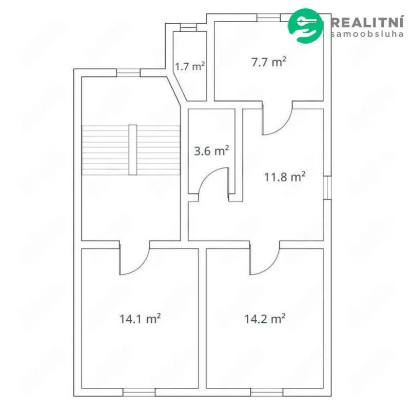 Na patře se dále nachází samostatná místnost 14,1 m, aktuálně nevyužitá možnost: propojení s bytem, vybudování kanceláře / ateliéru, samostatného ubytování.