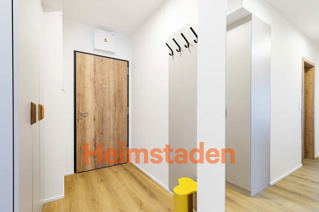 Byt je dispozičně řešen jako prostorný obývací pokoj s kuchyňským koutem, samostatná ložnice, předsíň a koupelna s toaletou. Obývací část nabízí dostatek přirozeného světla a je vybavena rozkládacím gaučem, jídelním stolem se židlemi a moderní kuchyňskou linkou s vestavěnými spotřebiči, včetně myčky, indukční desky, trouby, lednice a mrazáku. Ložnice disponuje postelí a vestavěnou skříní. Součástí vybavení je také pračka, což zajišťuje maximální komfort pro každodenní život. Příjemným bonusem je balkon orientovaný do klidného vnitrobloku plného zeleně, který nabízí ideální prostor pro odpočinek. K bytu náleží také sklep. Komfort bydlení zvyšují venkovní rolety ve všech místnostech. Dům je vybaven výtahem a je zde možnost pronájmu garážového stání, včetně stání pro nabíjení elektromobilů.