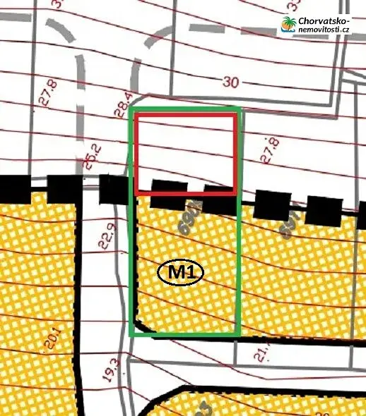 2/3 terénu se nachází v hranicích stavební plochy, v zóně M1 – převážně bytová výstavba, zatímco 1/3 je mimo hranice stavební plochy.