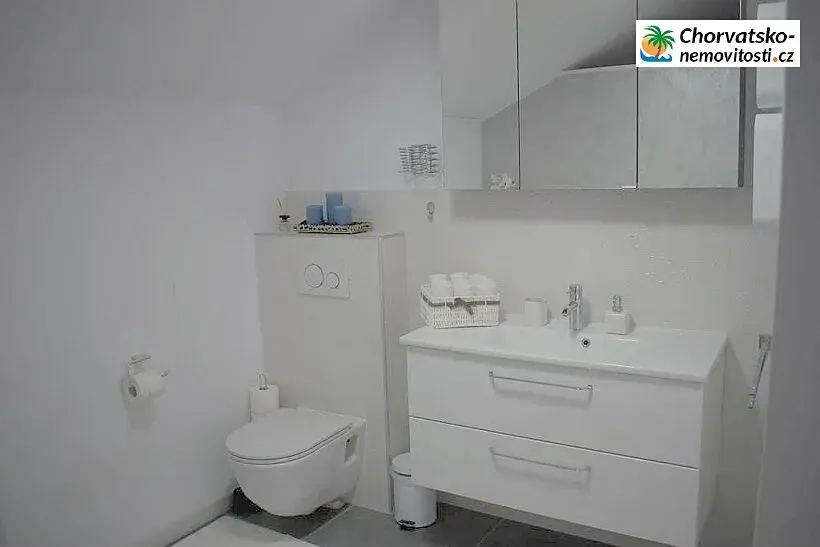 Chorvatsko-Nemovitosti.cz pěknou slunečnou lux.vilu s bazénem a výhledem na moře. Vila se nachází podél přímé cesty k moři. V ceně je i parkování, pro vaše vozidla a velice pěkná výbava, která je laděna do světlých barev. Bazén nabízí příjemné zchlazení během horkých letních dnů. Nedaleko je malý supermarket a restaurace. Podrobně o nemovitosti: