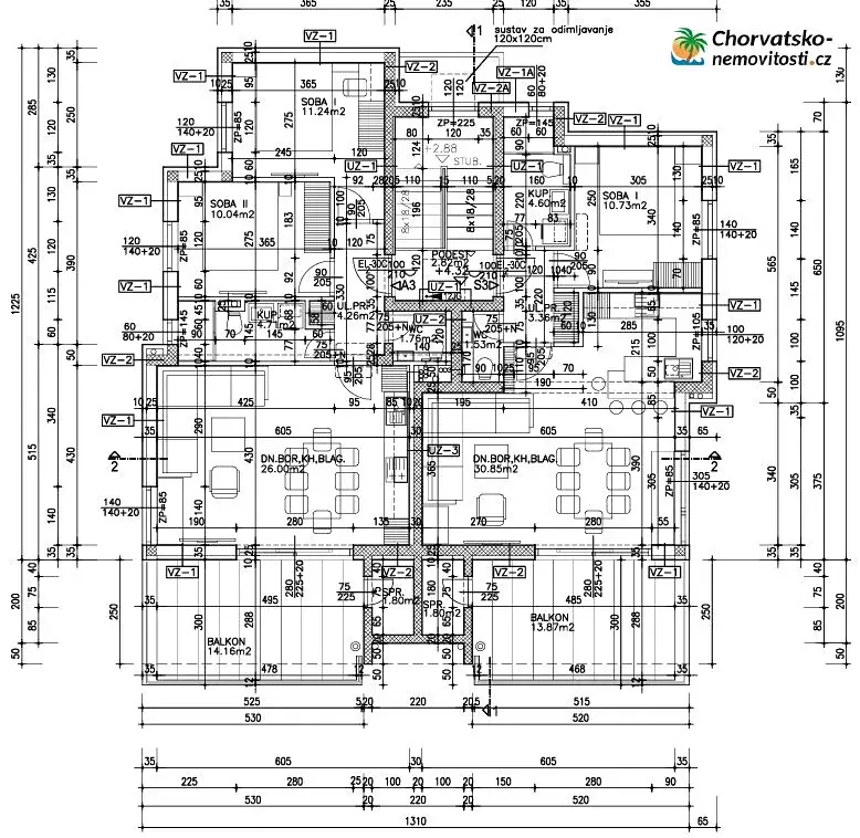 Na prodej třípokojový byt (A3) o celkové ploše 75,25 m2 ve druhém patře novostavby v Novalji
