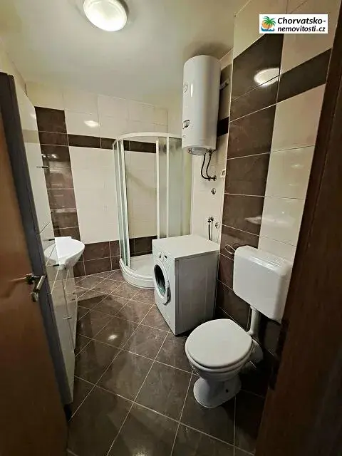 Chorvatsko-Nemovitosti.cz nabízí prostorný zařízený apartmán 2+1 o rozloze 42m2. Je vkusně vybavený a připravený pro nového majitele. Před apartmánem je prostorná zahrada s cestou přímo k moři. Apartmán má prostorný, krytý balkón na který si můžete dát posezení a užít si ranní snídani s výhledem na moře. Pláž je písčitá s kamínky, občas pouze kamínková. Podrobně o apartmánu: