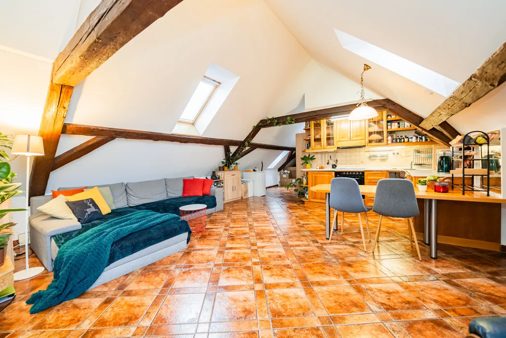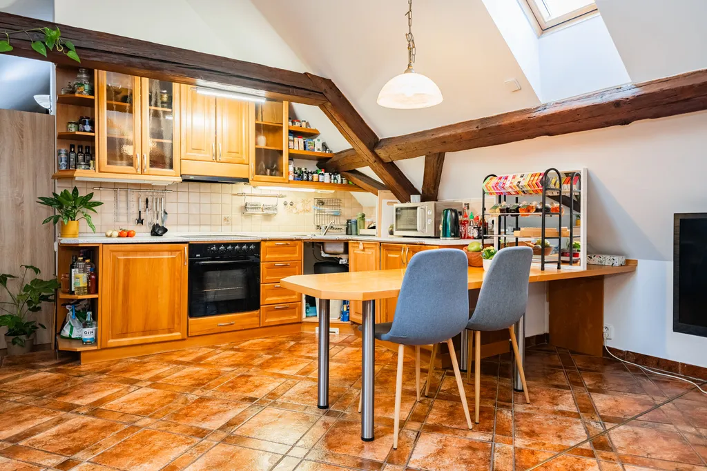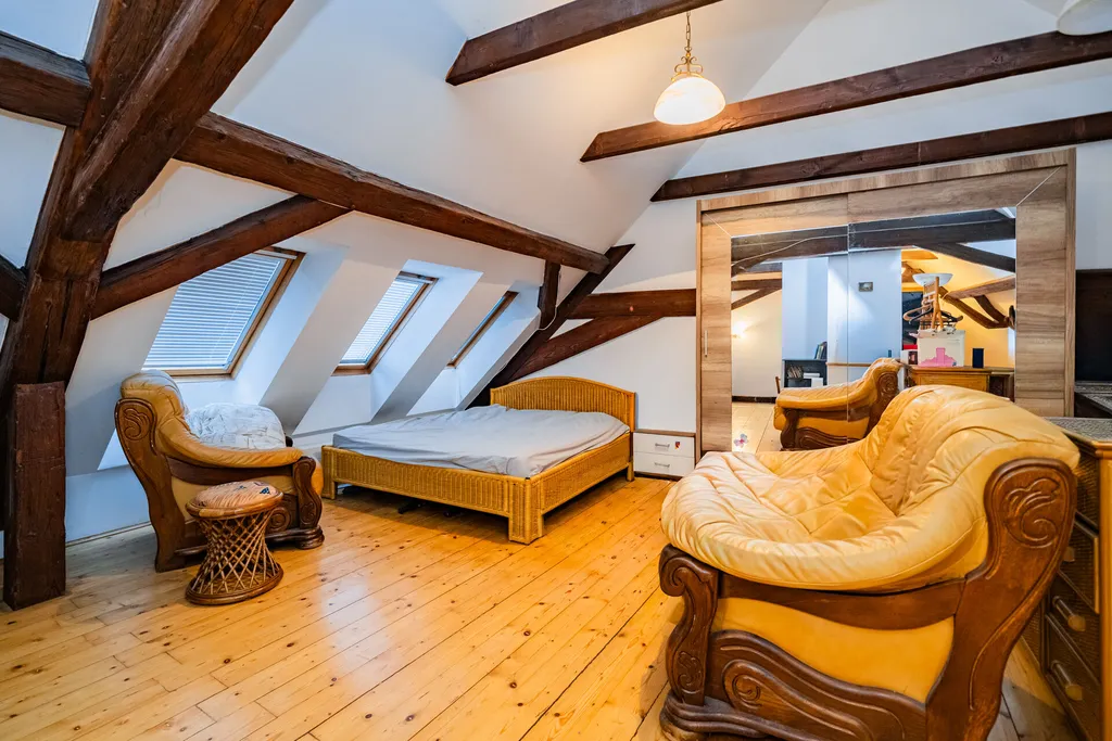Celý byt působí velmi sympaticky a originálně i díky prvkům půdního prostoru, ve kterém je vybudován. Tato nadstandardní nemovitost umožňuje i propojení bydlení s podnikáním ve vyhledávané lokalitě centra Prahy. Daná lokalita je koneckonců velkou přidanou hodnotou této nabídky. Těsná blízkost obchodů a služeb včetně MHD, metra a vlakového nádraží, snad ani netřeba zmiňovat.