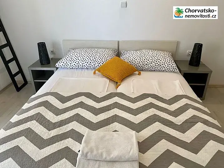 Chorvatsko-Nemovitosti.cz má pro Vás velký třípokojový apartmán 75m2, jen 50m od moře. App. se nachazí v malé vesnici Vidaliči, která žije poklidným životem. Novalja je vzdálená 5km. App. má pěkné vybavení, dvě terasy s výhledem. Apartmán má prostorné 3 pokoje, terasy jsou směrovány na moře, ud domu naleznete krb a zeleň a samozřejmě parkovací místa. Pláž je vzdálena 50m. Pláž je písčito oblázková a je včetně sprch a sociálních zařízení. Na terasu vstoupíte přímo z obývací kuchyně. Nedaleko jsou obchody a pizerie případně kebab. Do města Novalja se dostanete pohodlnou kvalitní silnicí z trajektu nebo z mostu, spojující pevninu a ostrov Pag. Podrobně o apartmánu: