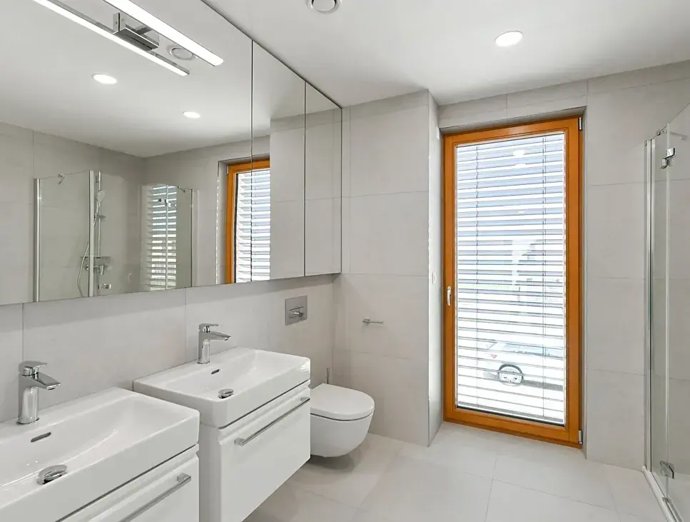 Standard domu výrazně převyšuje běžnou nabídku na trhu. Samozřejmostí je podlahové vytápění, rekuperace, chlazení, tepelné čerpadlo IVT, a inteligentní systém ovládání domácnosti, který umožňuje vzdáleně řídit komfort celého domu s maximální jednoduchostí. Atmosféru doplňují dřevěná Euro okna, elektricky ovládané předokenní žaluzie a kvalitní materiály v podobě vinylových podlah a dlažby. Velkoryse řešené vestavěné úložné prostory v každé místnosti jsou citlivě integrovány tak, aby nenarušovaly čistý design interiéru. Detail, který oceníte při každodenním užívání, představuje inteligentně řešené osvětlení chodeb s automatickým spínáním, jež nenápadně přispívá k celkovému komfortu a nadstandardu bydlení.