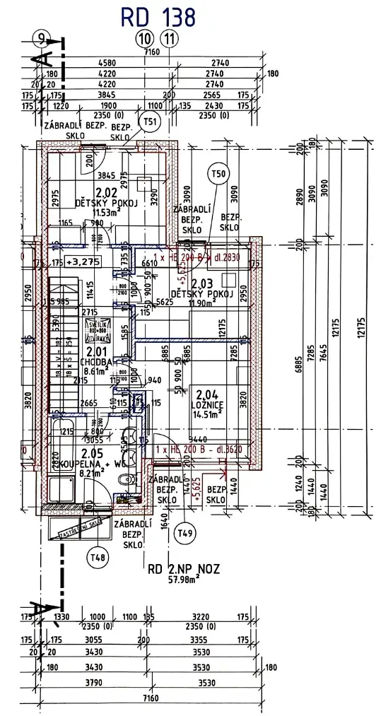 V horním podlaží se nachází soukromá klidová zóna domu, tvořená třemi ložnicemi (14 m2, 12 m2 a 12 m2) a galerií, která nabízí další úložné možnosti. Každá místnost je navržena s důrazem na čistotu linií, funkčnost a dostatek světla. Druhá koupelna s vanou i sprchovým koutem poskytuje komfort odpovídající moderním nárokům na rodinné bydlení.