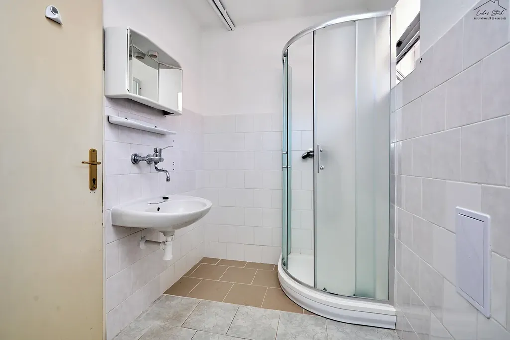 Třetí objekt se nachází v zádní části areálu a je přístupný z vnitrobloku. Najdete zde byt po rekonstrukci, kancelářské zázemí a dvě garáže s montážní jámou.