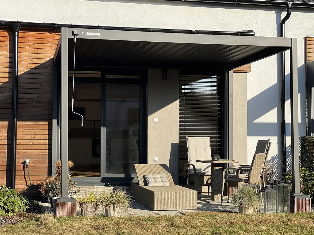 V přízemí domu vás přivítá vstupní zádveří, na které navazuje koupelna se sprchovým koutem a toaletou. Dominantou přízemí je prostorný obývací pokoj s plně vybaveným kuchyňským koutem, který tvoří přirozené centrum domu – místo pro rodinná setkání, vaření i odpočinek. Díky velkému francouzskému oknu s automatickými žaluziemi je prostor krásně prosvětlený a zároveň umožňuje přímý vstup na zastínitelnou pergolu o velikosti 10 m². Ta navazuje na útulnou relaxační zahradu, která poskytuje dostatek soukromí pro letní posezení, grilování nebo odpočinek po práci. Praktickým doplňkem přízemí je také komora, umístěná pod schody, ideální pro uskladnění sezónních věcí nebo domácích potřeb.