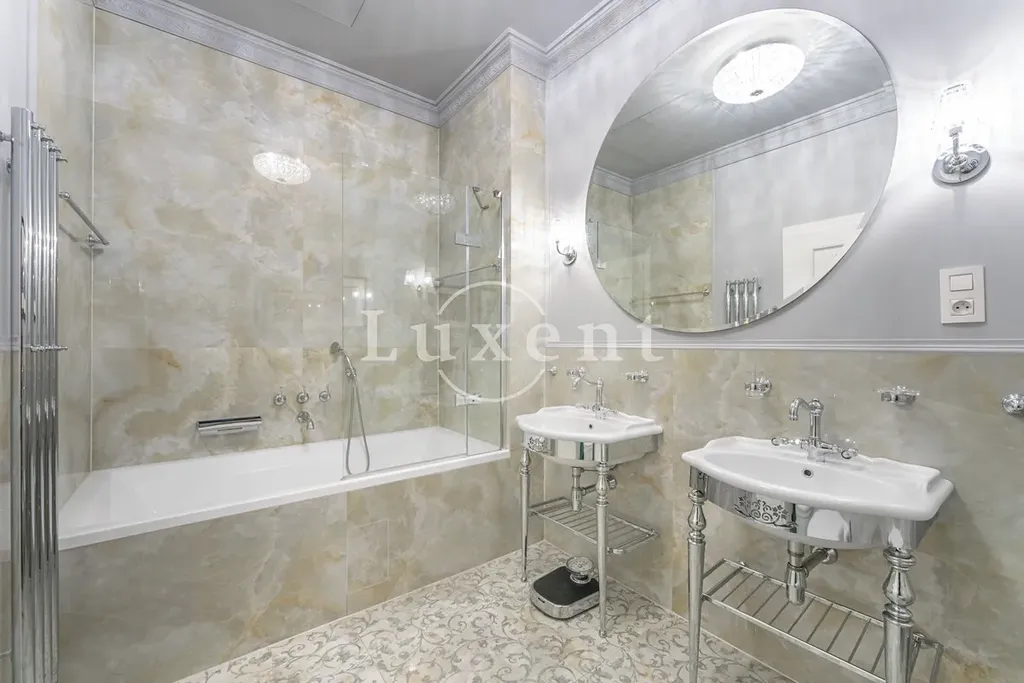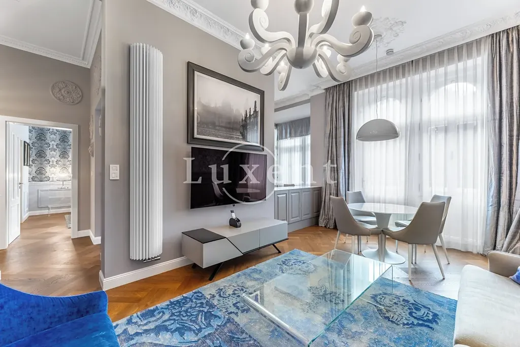 Byty jsou designové, prémiově zařízené italským nábytkem včetně kuchyně, osvětlení i nábytku. Mají své balkony s výhledem na kolonádu nebo klidné terasy s orientací do klidného stylového dvora. Dva z horních bytů jsou mezonetového typu. Z jednoho z bytů ve 2.NP je momentálně velmi příjemné SPA se saunami, odpočívárnou a terasou k užití pro uživatele bytů. V přízemí je úspěšně provozována restaurace. V suterénu je pak technické zázemí. Dům byl postaven v r. 1897 podle karlovarského architekta Karla Hellera. Jako památkově chráněný byl v r. 2016 kompletně zrekonstruován podle italského inženýra Stefana Stramigioli a dokončen architekty ateliéru Soukup.