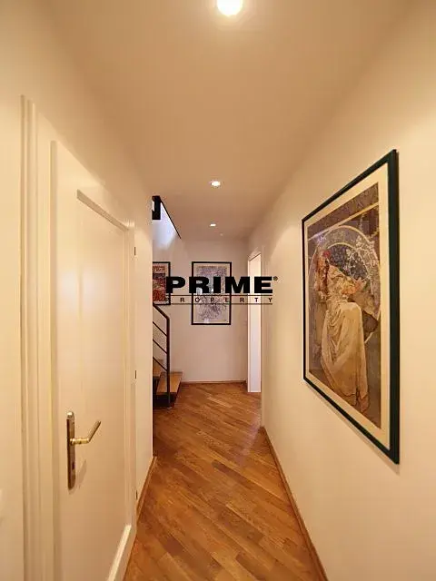 Elegantní, zrekonstruovaný, zařízený, 2 ložnicový, mezonetový byt se 2 koupelnami k pronájmu, 3+kk, 96m2, s balkonem 4m2 (orientace do vnitrobloku), situovaný v 5. a 6. patře kompletně zrenovovaného novobarokního domu s výtahem. Budova se nachází v boční ulici u Karlova náměstí, na rozhraní Prahy 1 a Prahy 2, v blízkosti zastávky tramvaje, stanice metra Karlovo náměstí, obchodů, supermarketu Albert, kaváren, restaurací a pouze pár minut chůze k nákupnímu centru Quadrio i na nábřeží a 10 minut chůze na Václavské náměstí.