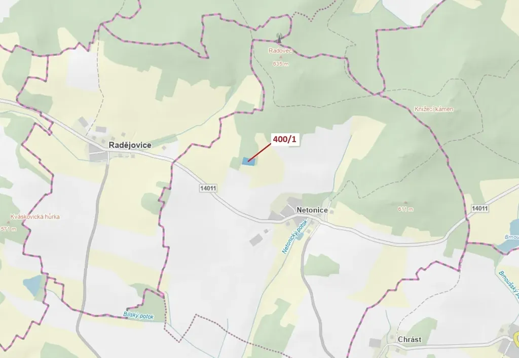 Lesní pozemek o výměře 3965 m2, parcelní číslo 400/1, podíl 1/1, katastrální území Netonice, obec Bílsko, obec s rozšířenou působností Vodňany, okres Strakonice, Jihočeský kraj.