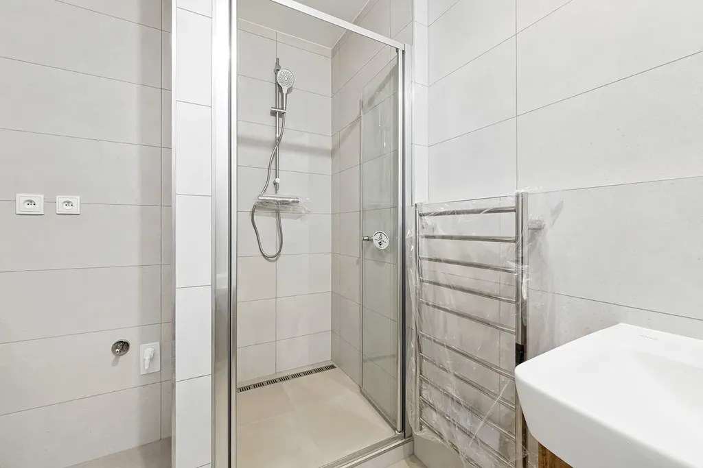 Byt je dokončený po kolaudaci, je provedena příprava pro kuchyňskou linku, hotové koupelny včetně sanity, dlažby, interiérové dveře, rekuperační jednotka, podlahové vytápění, plastová okna. V ceně bytu je vinylová podlaha, možnost vlastního výběru s případným doplatkem rozdílu ceny za m².
