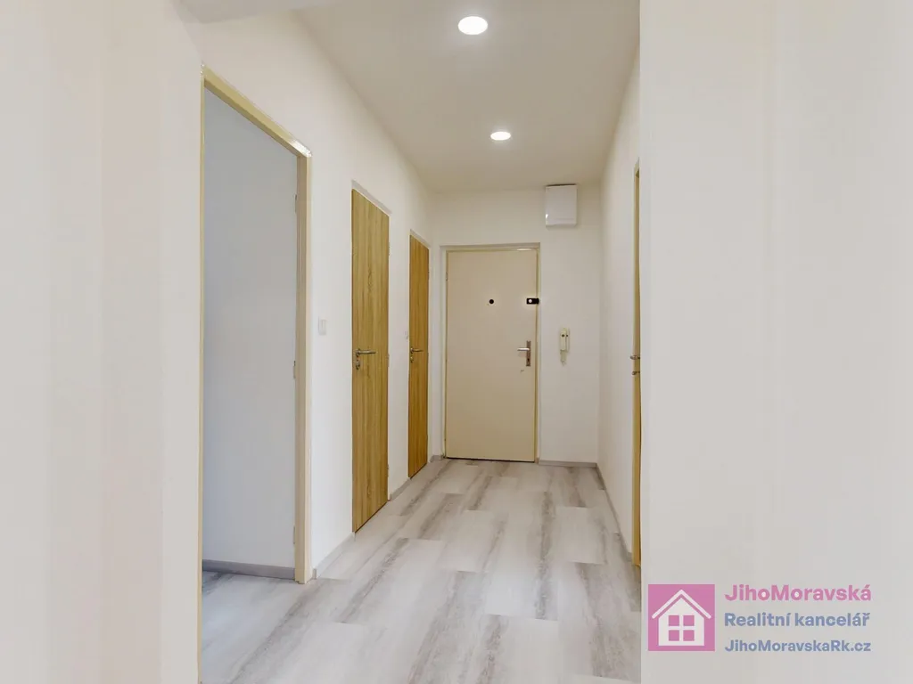 předsíň, pokoj, toaleta, koupelna (sprchový kout), pokoj se vstupem na balkón, šatna, pokoj a kuchyň. V přízemí bytového domu zděná sklepní kóje.