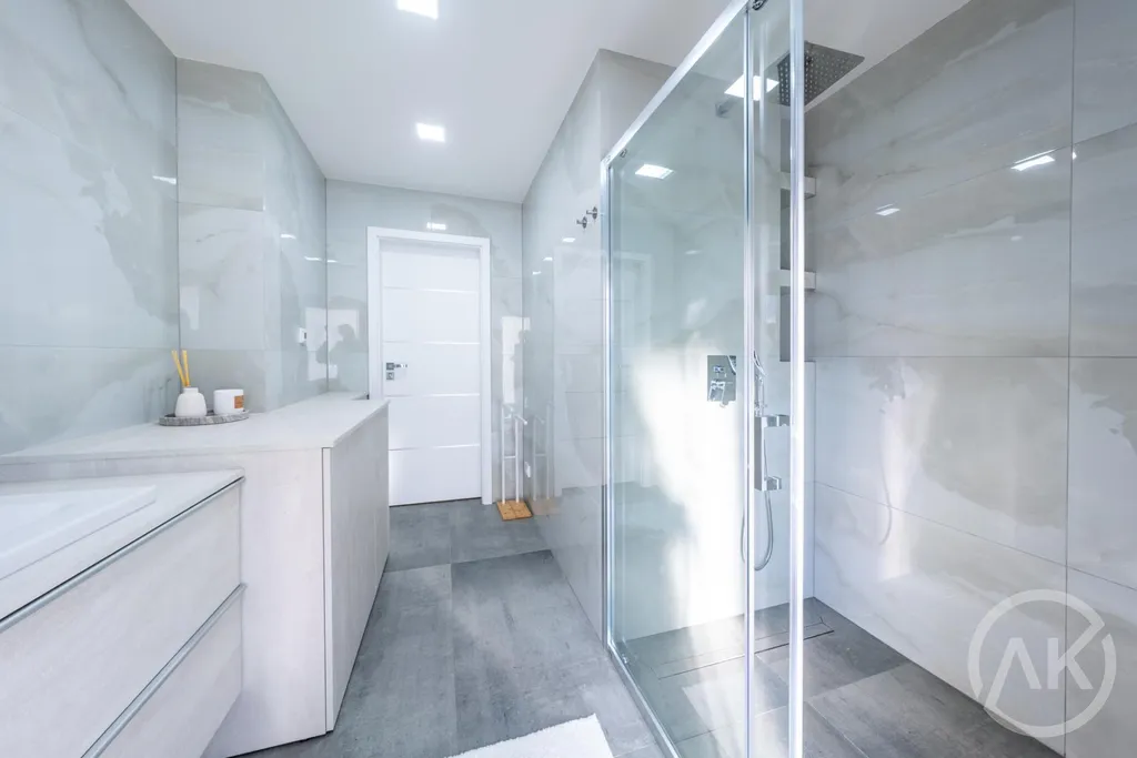 - neuvěřitelnou koupelnu, velkoformátový obklad, kamenické rohy, podomítkové baterie ve sprše a na záchodě i na prcku a shoz do prádelny, která se do plochy bytu nepočítá, ale máš ji plně k dispozici ve sklepě,