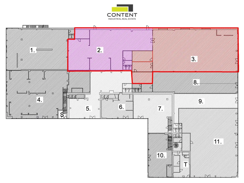 V zastoupení majitele a bez provize nabízíme komerční prostory o celkové velikosti 961 m², které jsou vhodné pro skladování, prodejnu či showroom. Nachází se v komerční budově nedaleko dálnice D1, EXIT 6 a 8. Jedná se o pronájem dvou spojených jednotek (č. 2 a 3), v případě zájmu je možnost pronájmu obou jednotek společně s jednotkou č. 1, o celkové výměře 1283 m².