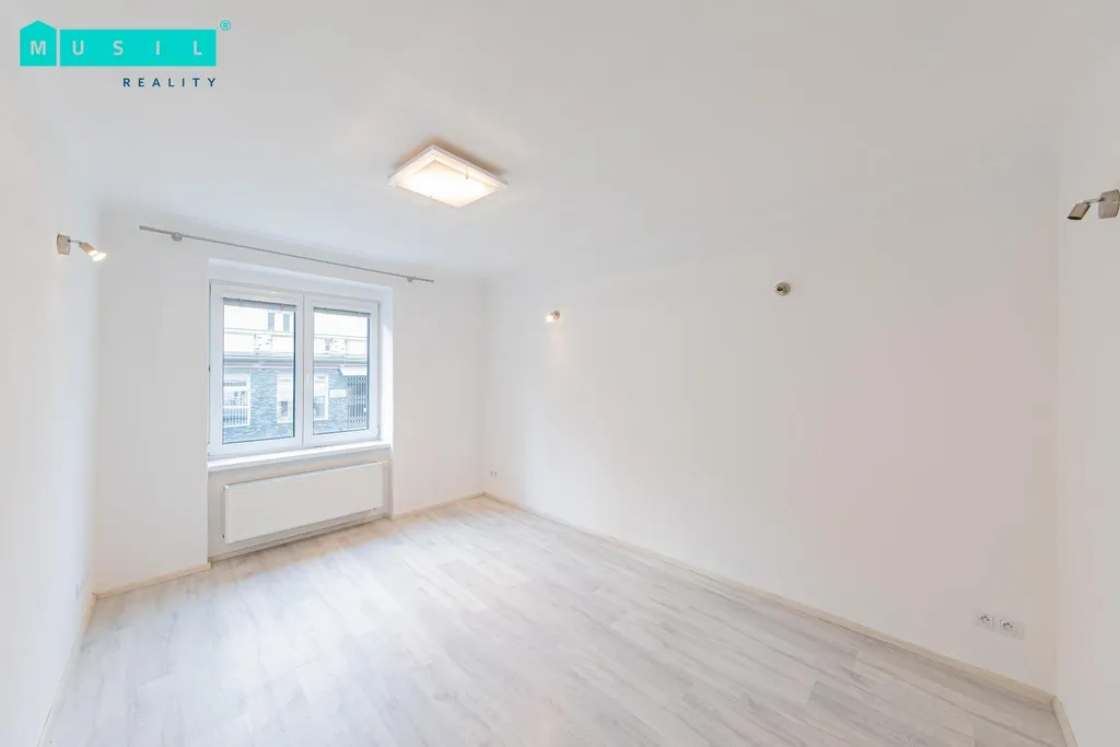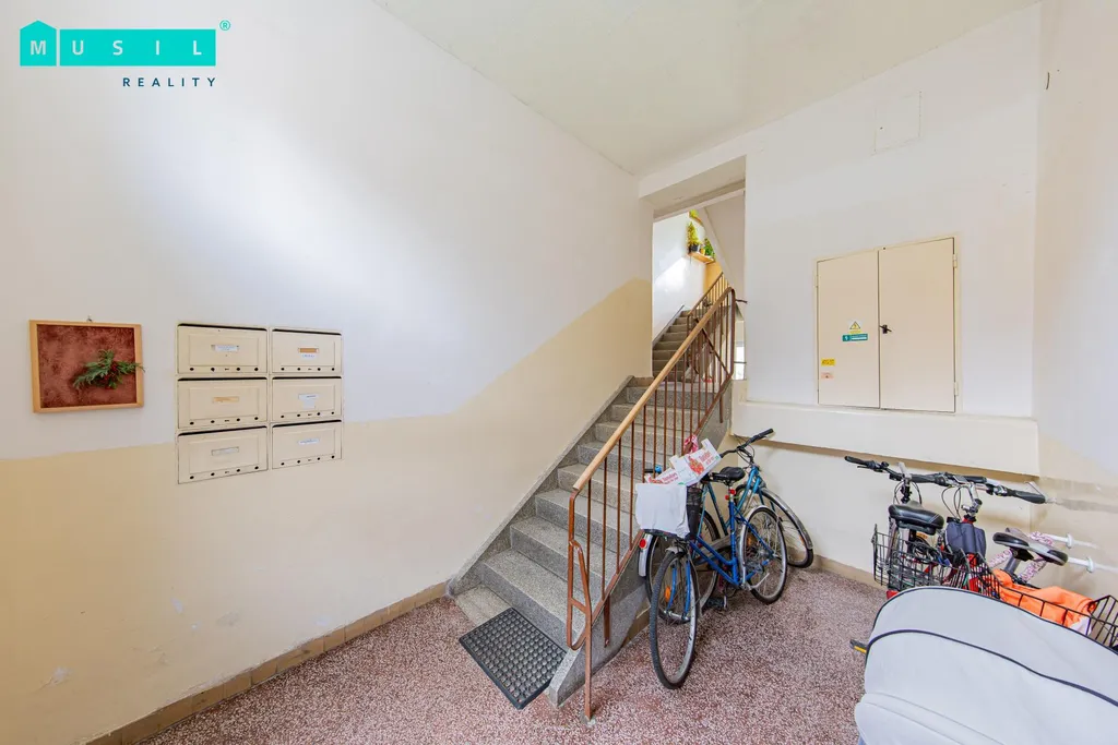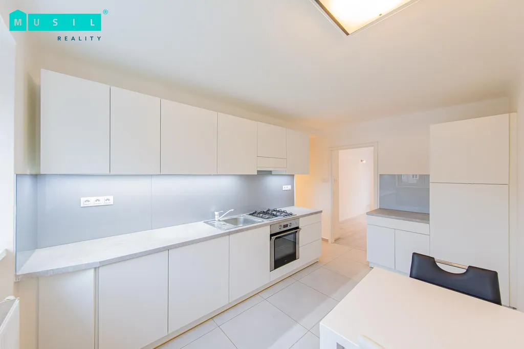 Dispozice bytu tvoří dva neprůchozí pokoje a samostatná kuchyně se zánovní kuchyňskou linkou vybavenou základními spotřebiči (plynový sporák a elektrická trouba). Prostorná koupelna disponuje sprchovým koutem a toaletou. Výhodou je vlastní plynový kotel zajišťující vytápění bytu. K jednotce náleží také sklepní kóje.