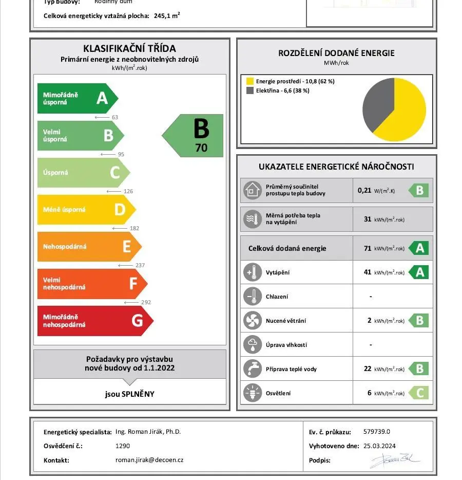 | Třída energetické náročnosti | B - Velmi úsporná |