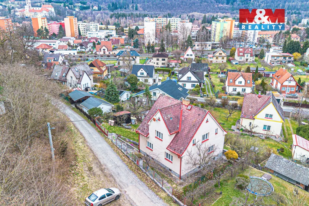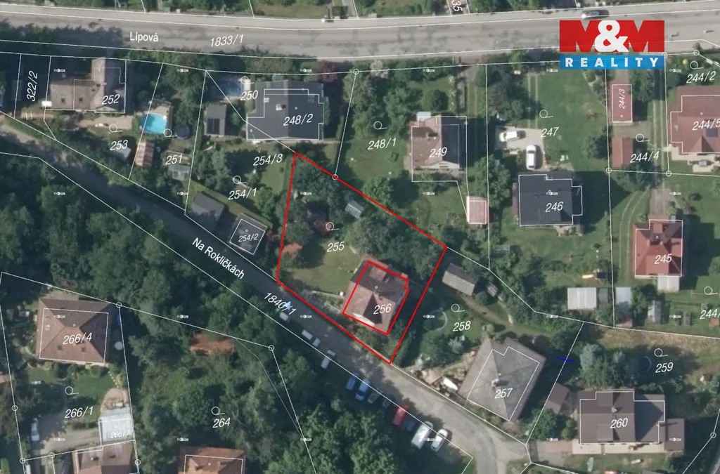 K domu náleží pozemek o rozloze 785 m² se zahradou, garáží a skleníkem, což poskytuje dostatek prostoru pro rodinné bydlení i odpočinek.