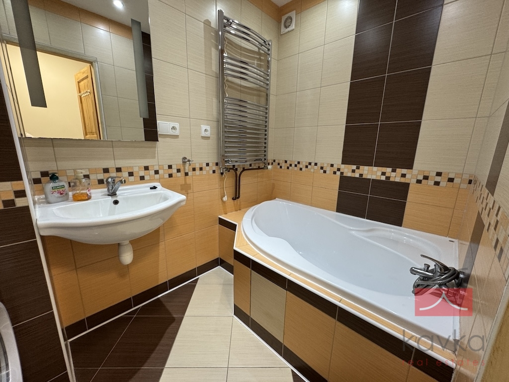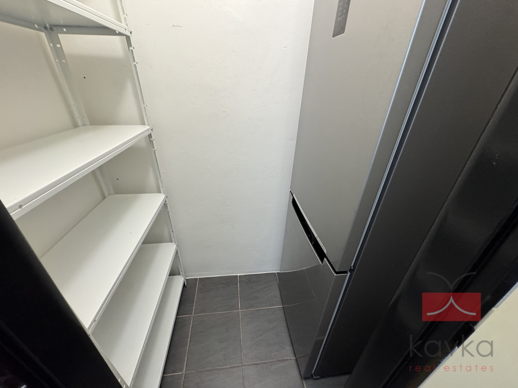 Byt nabízí praktické dispoziční řešení: vstupní chodba, samostatné WC, koupelna s vanou, kuchyň s jídelnou a spíží, obývací pokoj a ložnice. Velkým benefitem jsou také nadstandardní úložné prostory – sklepní kóje o velikosti 19 m², vlastní kotelna (6 m²) a sklad tuhých paliv (5 m²).