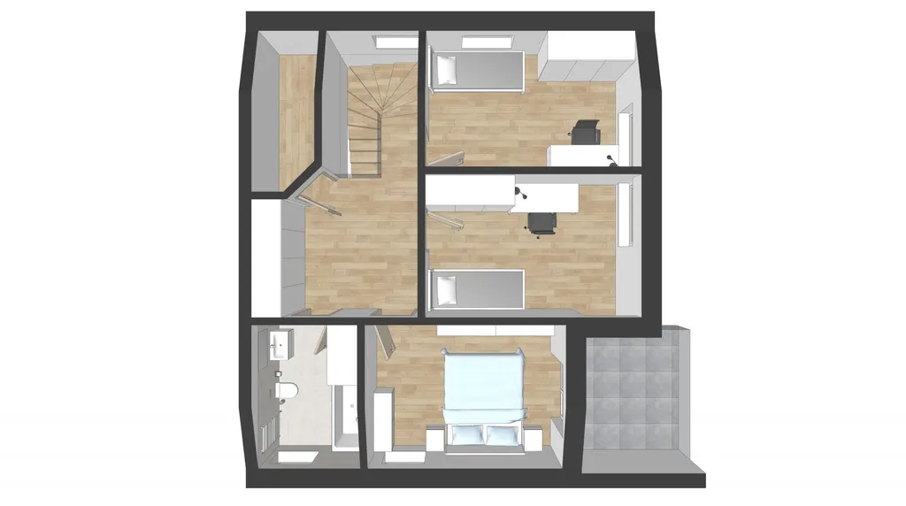 - vytápění - tepelné čerpadlo - podlahové vytápění do systémových desek vč. rozdělovače, v koupelně i topné těleso