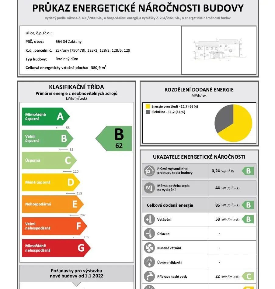 | Třída energetické náročnosti | B - Velmi úsporná |