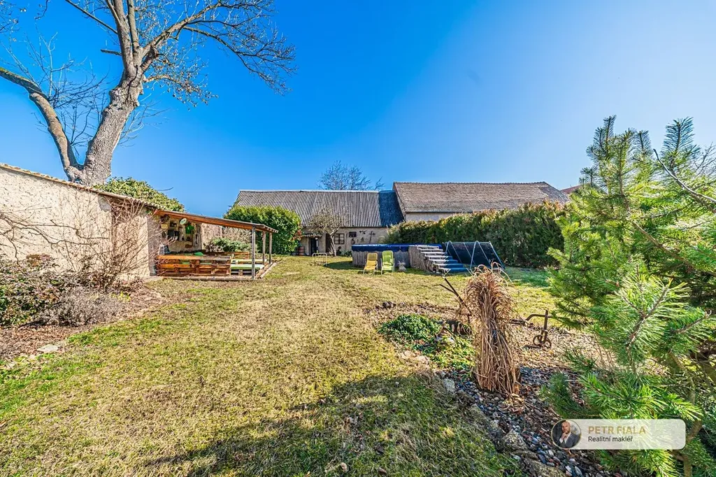 Za stodolou se rozprostírá vzrostlá zahrada s nadzemním bazénem (průměr 5,6 m, hloubka 1,2 m) se solárním ohřevem a pergolou s posezením.