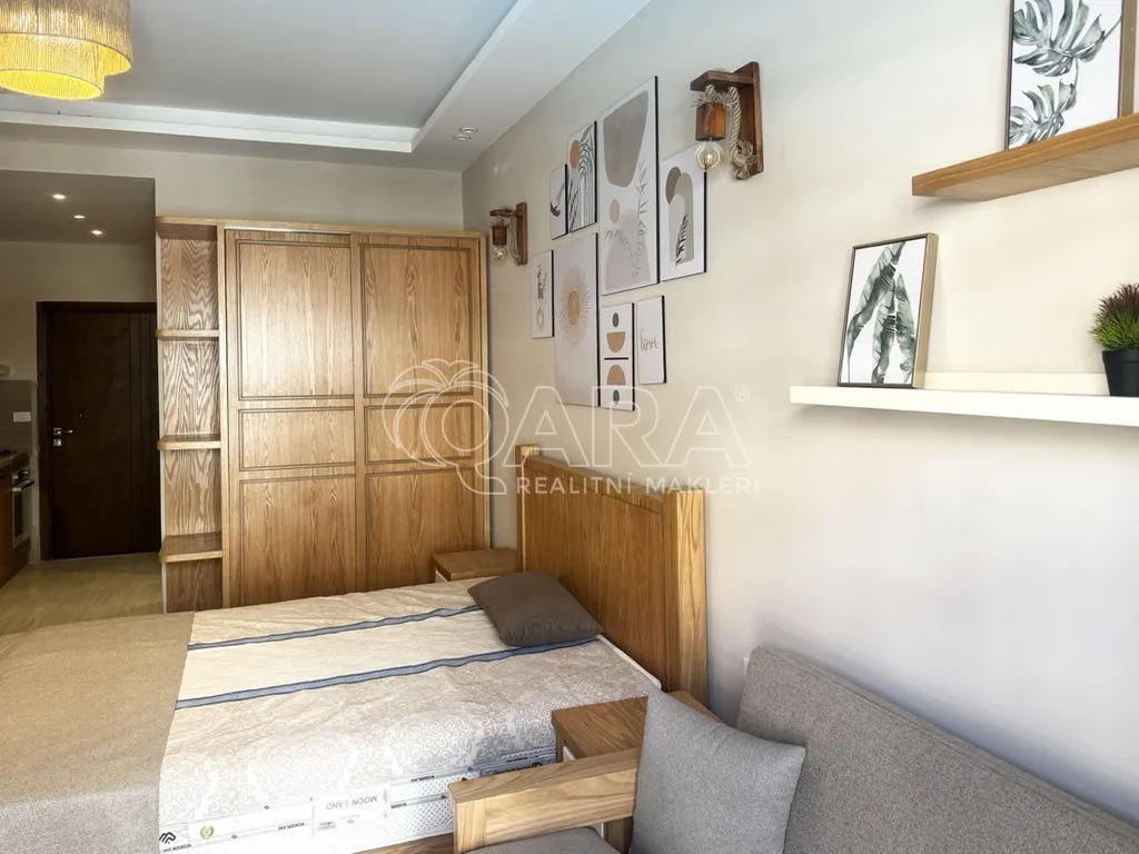 Nabízený byt má započtenou plochu 49 m2 (včetně podílu na společných prostorách, přibl. 20 % ze započtené plochy). Byt má dispozici 1+kk (hlavní obytný prostor s kuchyňským koutem, koupelna se sprchou a WC) s balkonem, ze kterého je krásný výhled na celý vnitroblok projektu Al Hambra s bazénem. Byt se nachází na 1. patře (druhém podlaží) čtyřpatrové budovy. Byt je kompletně vybaven nábytkem z masivního dřeva a spotřebiči a připraven k okamžitému užívání.