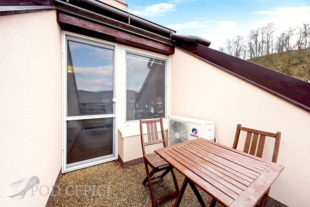 Ačkoliv se jedná o jednotku v nejvyšším podlaží, byt je prostorný, vzdušný a jen na omezené části půdorysu jsou šikmé stropy.