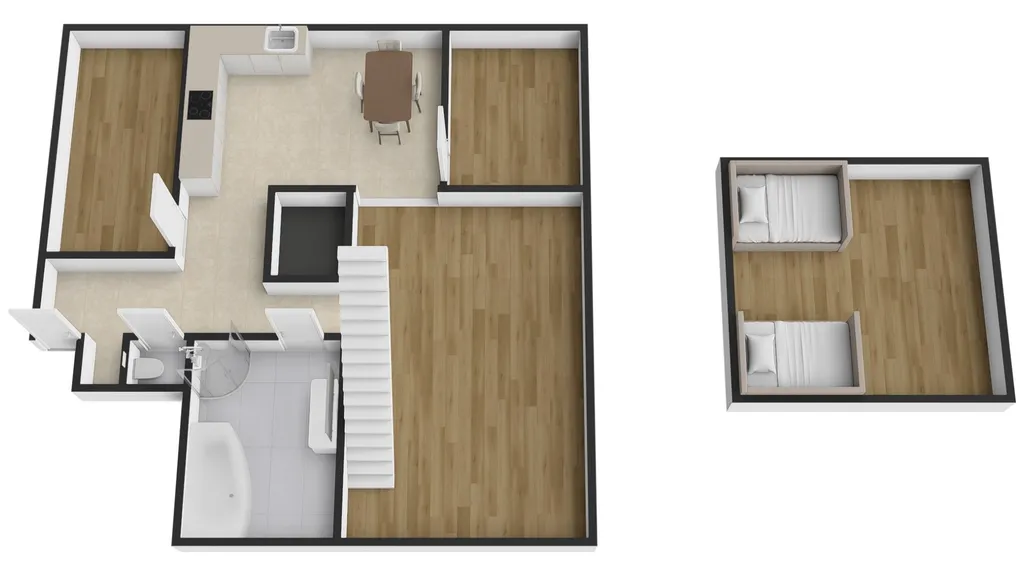 Vzdušný a velmi příjemný interiér je plně vybaven vkusným nábytkem i spotřebiči. K dispozici je velký obývací pokoj s pracovním koutem, kuchyň s jídelním koutem, samostatná ložnice, obytný prostor v podkroví, koupelna s vanou i sprchou, toaleta a vstupní chodba s vestavěnou skříní. Dřevěné prvky krásně podtrhují originalitu místa. Dům se nachází v klidné okrajové části města v blízkosti přírody i lesoparku. Benefitem je bezplatné parkování v ulici i okolí.
