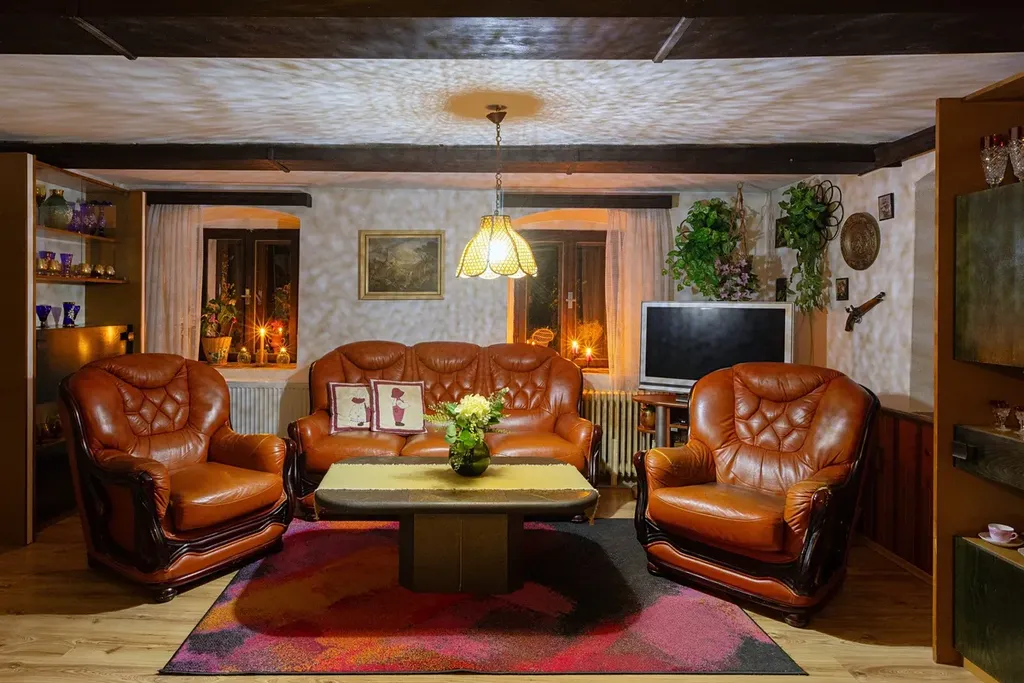 Hlavní rekonstrukce domu probíhaly mezi lety 1985 - 1995, kdy došlo k výměně střechy vč. krovů, odkopání domu, výměnám oken či novým omítkám. Dům není bez investic, ale je plně funkčním zázemím k trvalému bydlení s nesporným kouzlem. Ve dvou podlažích nabízí 185 m2 plochy, kterou tvoří obývák se samostatnou kuchyní a 4 ložnice s jednou koupelnou. Dům je vybaven ústředním topením na tuhá paliva, krb v obýváku je nyní nefunkční.