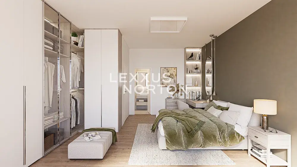 Byt nabízí obývací pokoj s kuchyňským koutem a přímým vstupem na terasu, samostatnou ložnici, koupelnu s vanou, šatnu a vstupní halu. Díky promyšlenému dispozičnímu řešení působí byt vzdušně a poskytuje komfortní zázemí jak pro jednotlivce, tak pro pár. Velká terasa rozšiřuje obytný prostor a vytváří příjemné místo pro odpočinek i každodenní trávení času venku.