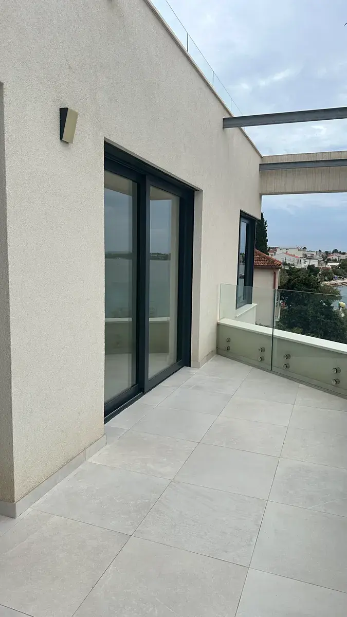 Dovolujeme si Vám nabídnout k prodeji nádhernou novostavbu vily s terasami a výhledem na moře, situovanou v klidné části města Zadar v Chorvatsku. Poloha vily je ve velmi výhodné první řadě u moře. Tato samostatně stojící patrová vila nabízí dva apartmány 3+1, o výměře 119,46 m2 a 97 m2 s pěti koupelnami, (lze předělat na tři apartmány) každý apartmán má terasu nebo velký balkon Vila je ideálním místem pro ty, kteří hledají klidné bydlení, nebo odpočinek na dovolené mimo rušné městské prostředí. Nová pláž je 10m od vily.