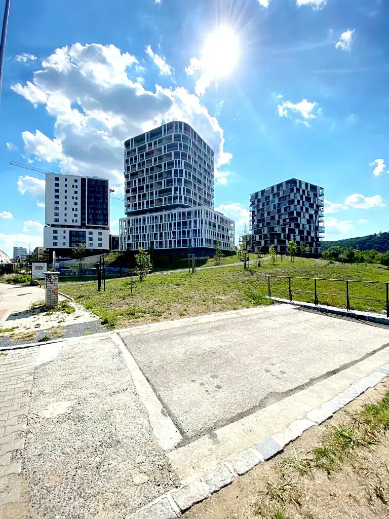 Světlý byt s hezkým volným výhledem a prostornou lodžií, situovaný v 9.patře nového rezidenčního domu s výtahem, v žádané lokalitě pražských Modřan. Byt sestává z předsíně s vestavěnou šatní skříní, koupelny se sprchovým koutem a WC a pokoje s kuchyňským koutem propojeného velkým oknem s lodžií. Vybaven je dále kuchyňskou linkou s vestavěnou sklokeramickou varnou deskou, elektrickou troubou, mikrovlnnou troubou, myčkou a lednicí. Možnost pronájmu velkého sklepa v domě. Klidné prostředí, v blízkosti Vltavy, s dobrým spojením tramvají do centra Prahy.