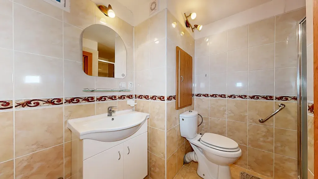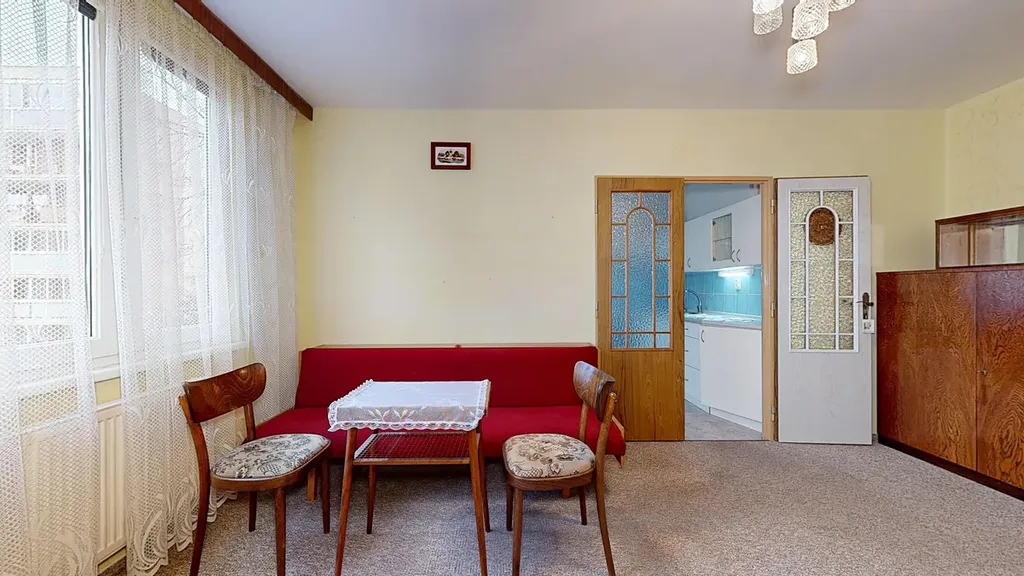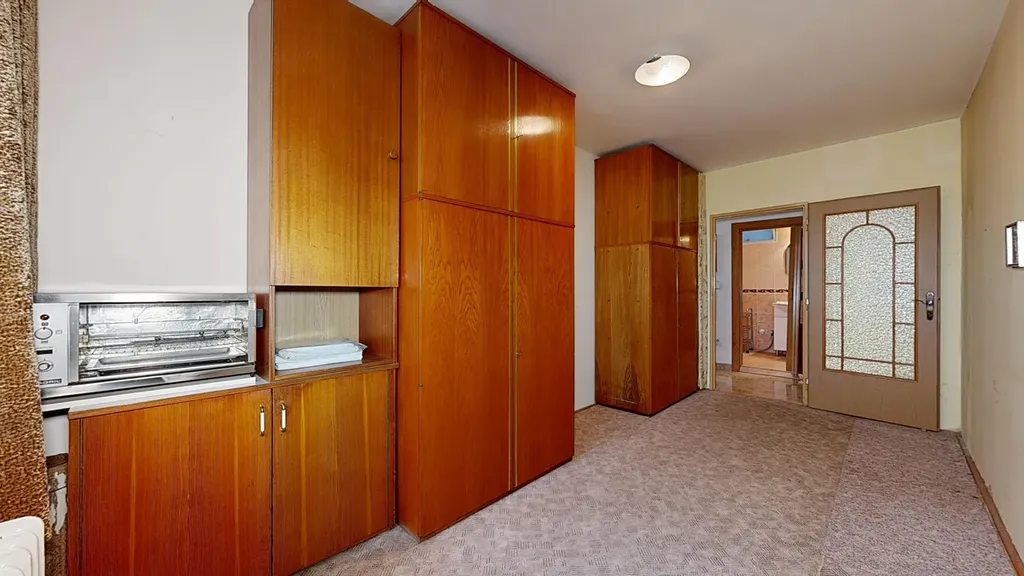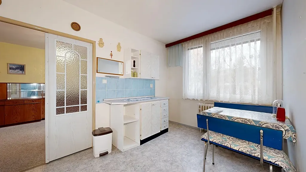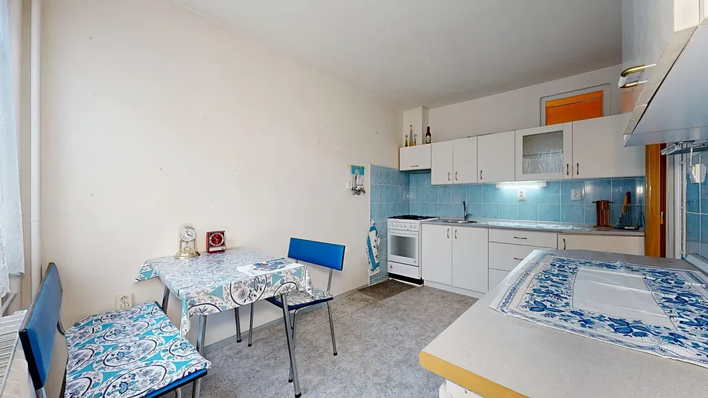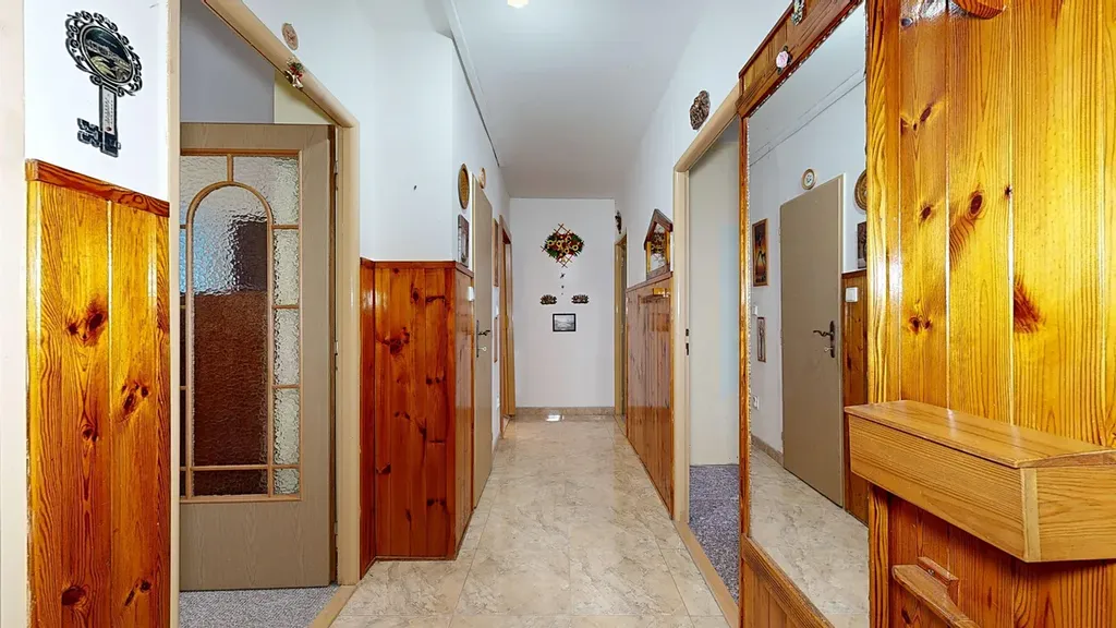 Interiér bytu je velmi dobře udržovaný. Podlahy jsou řešeny kombinací dlažby a plovoucí podlahy, což zajišťuje nejen příjemný vzhled, ale i snadnou údržbu. V chodbě byla nově položena dlažba, která dodává prostoru elegantní a čistý dojem. Byt disponuje zděným jádrem a nově zrekonstruovanou koupelnou. Praktickým benefitem je komora přímo v bytě a další komora umístěná na společné chodbě, která poskytuje další úložný prostor.