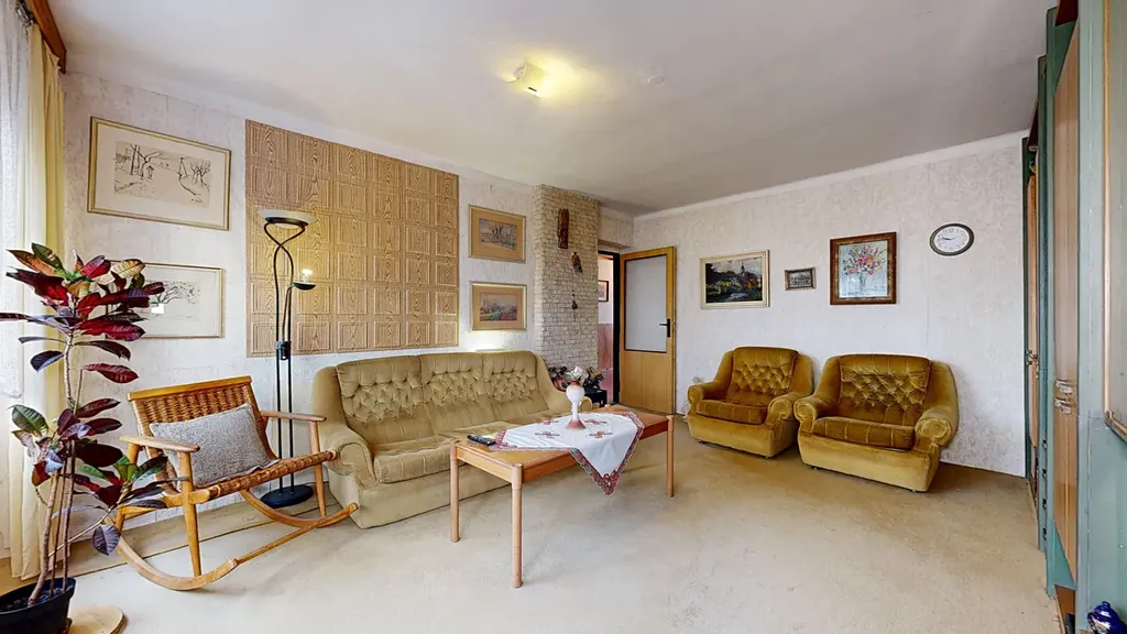 Vytápění domu je flexibilní a lze jej realizovat třemi různými způsoby: pomocí kotle na tuhá paliva, plynového kotle nebo elektrokotle, což umožňuje přizpůsobit se aktuálním potřebám a preferencím. Dále je součástí domu garáž, která poskytuje praktické řešení pro parkování a úschovu. Podlahy v domě jsou betonové, pokryté kobercem nebo plovoucí podlahou, což zajišťuje snadnou údržbu a komfortní bydlení.