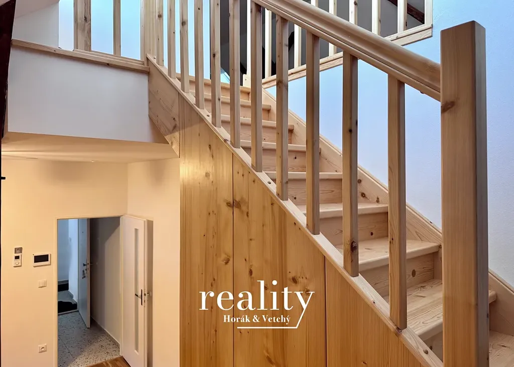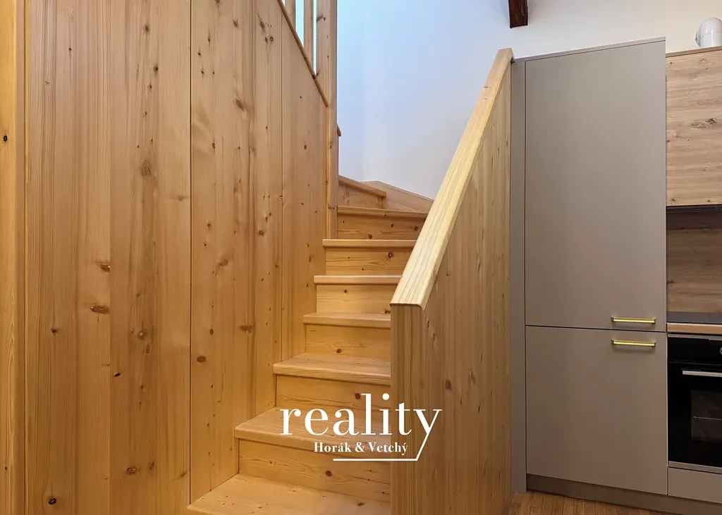 Byt zaujme vzdušným dispozičním řešením a dostatkem denního světla. Spodní část tvoří obytný prostor s kuchyňským koutem a koupelnou, horní patro nabízí klidovou zónu s ložnicí a dalším pokojem vhodným jako pracovna či dětský pokoj. Díky mezonetovému řešení působí byt velmi prostorně a zároveň útulně.