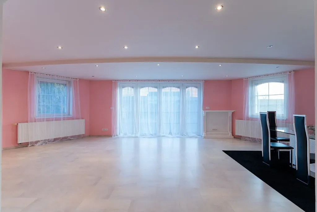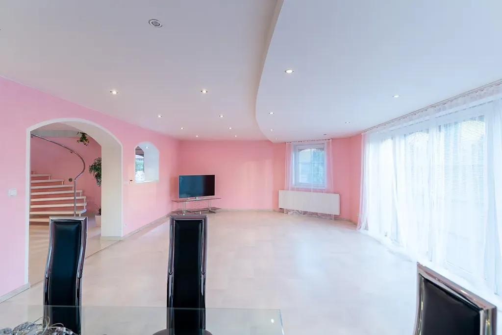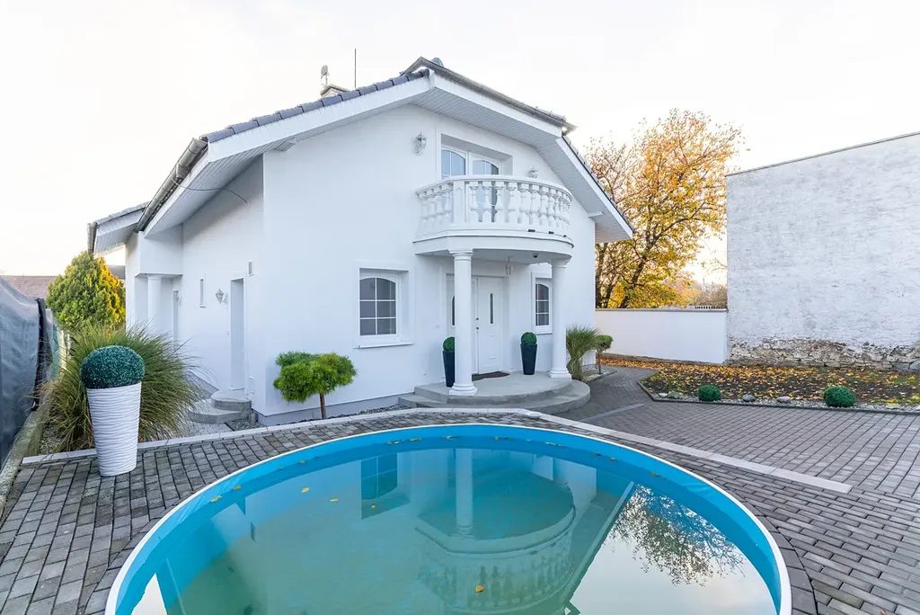 Dům má užitnou plochu 200 m² a podlahovou plochu 350 m², jejíž součástí je také zahrada s rozlohou 390 m². Zahrada je ideální pro odpočinek a nabízí možnost využití bazénu o ploše 9 m²který je ideální pro letní osvěžení. Na pozemku o celkové rozloze 586 m² je k dispozici dostatek míst pro parkování, včetně dvou garáží o výměře 80m2 a parkovací kapacity až pro čtyři vozidla.