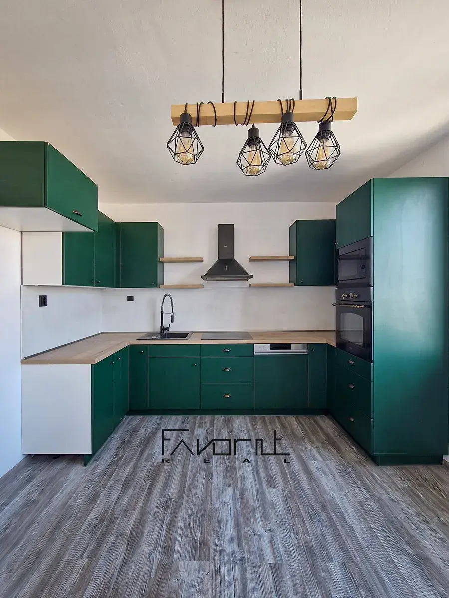 • čtvercová kuchyň s dostatkem místa pro jídelní kout