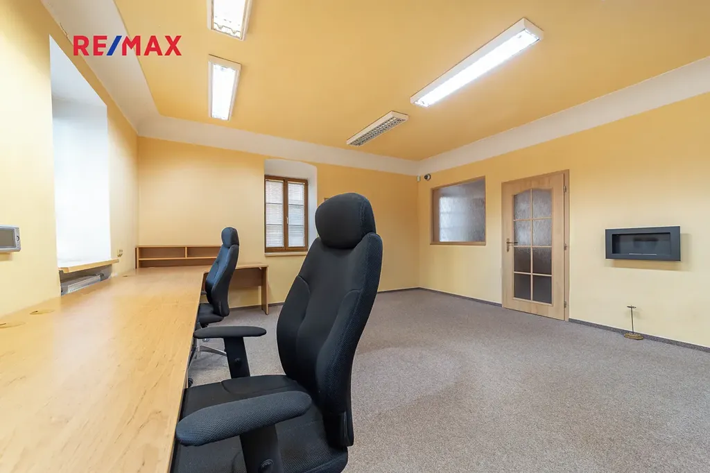 1. NP: Jednací místnost s kuchyňským koutem, samostatné WC, sklad a chodba s technickým zázemím.